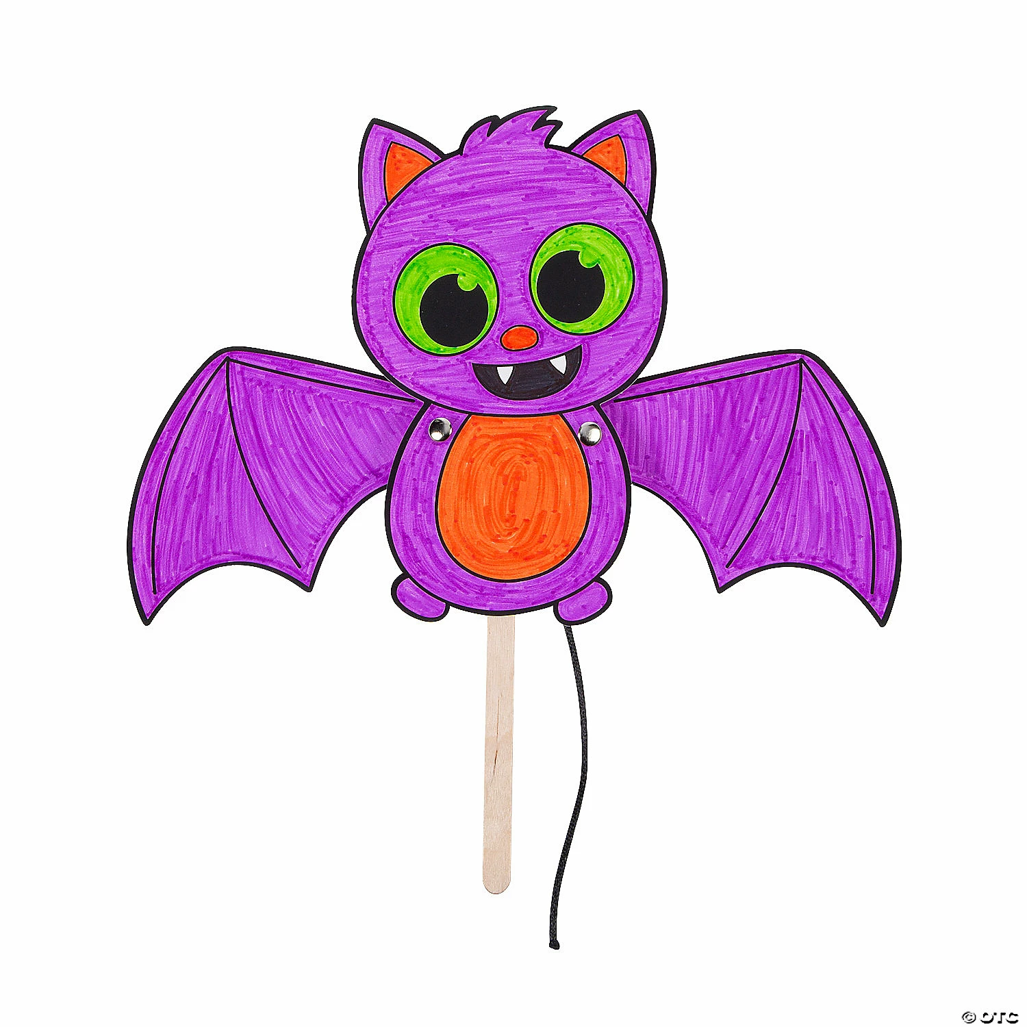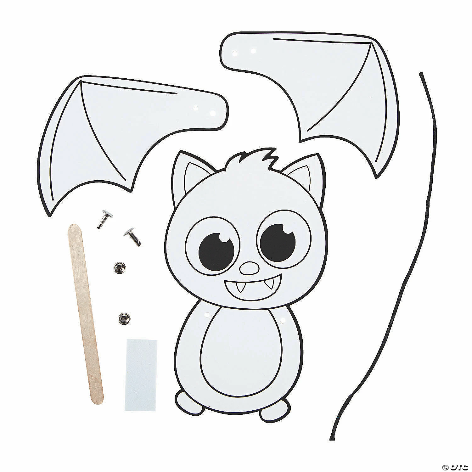 Looking for an easy Halloween craft for kids that isnโt scary? This cute, smiling bat is ready to be colored! Kids color the happy bat and then easily assemble the craft, attaching the bat to the stick and adding cording and brads to make the batโs wings flap. Itโs a fun, simple craft thatโs perfect for a fall classroom craft or at a craft table at a Harvest festival or community Halloween event. Includes cardstock bats, wooden craft stick, self adhesive foam pieces, satin cord and metal brads. 8 1/2″ x 10″ Makes 12. All craft kit pieces are pre-packaged for individual use. Kit includes instructions. ยฉ OTC