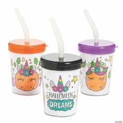 Brand new π Color Your Own π Halloween Unicorn Pumpkin Cups with Lids & Straws – 12 Ct. π