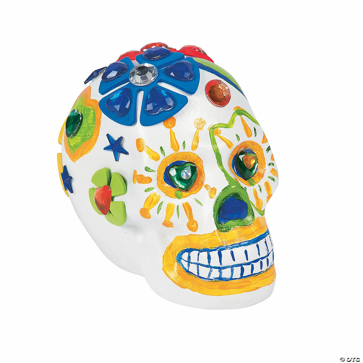 Use your own paint and embellishments to bring these skulls to life! A great arts and crafts activity for the classroom or at home! Add your own unique touch to these skulls and create wonderful Halloween decorations! Put them on your tables during your Halloween party or place them around the house for some spooky dรฉcor! 3″ x 4″ x 3 1/2″ ยฉ OTC